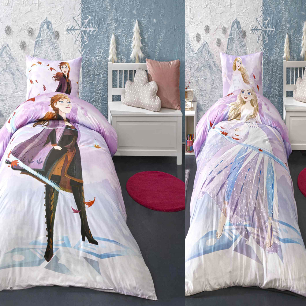 Lenjerie de Pat Disney Frozen Premium cu 2 Fete din Bumbac Ranforce