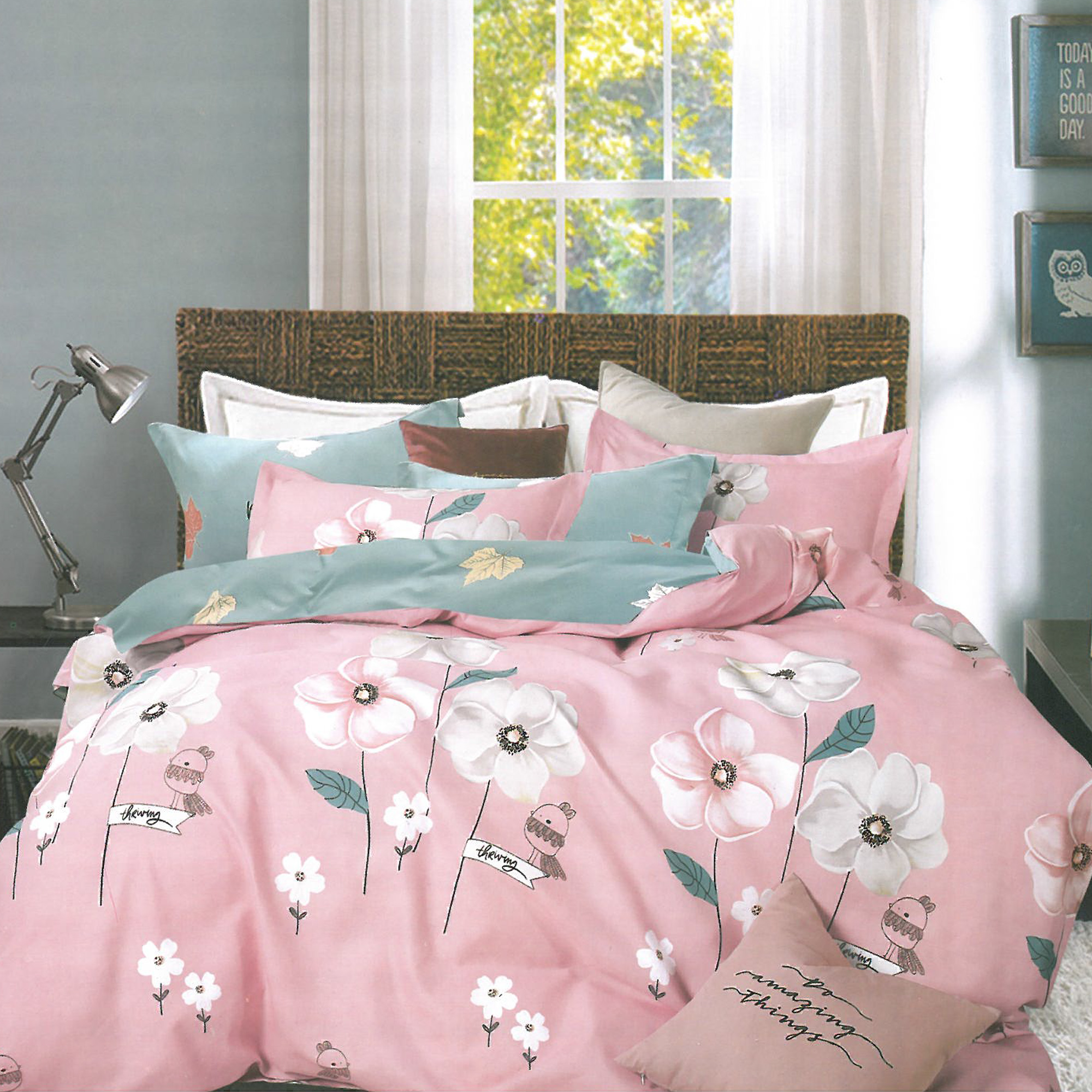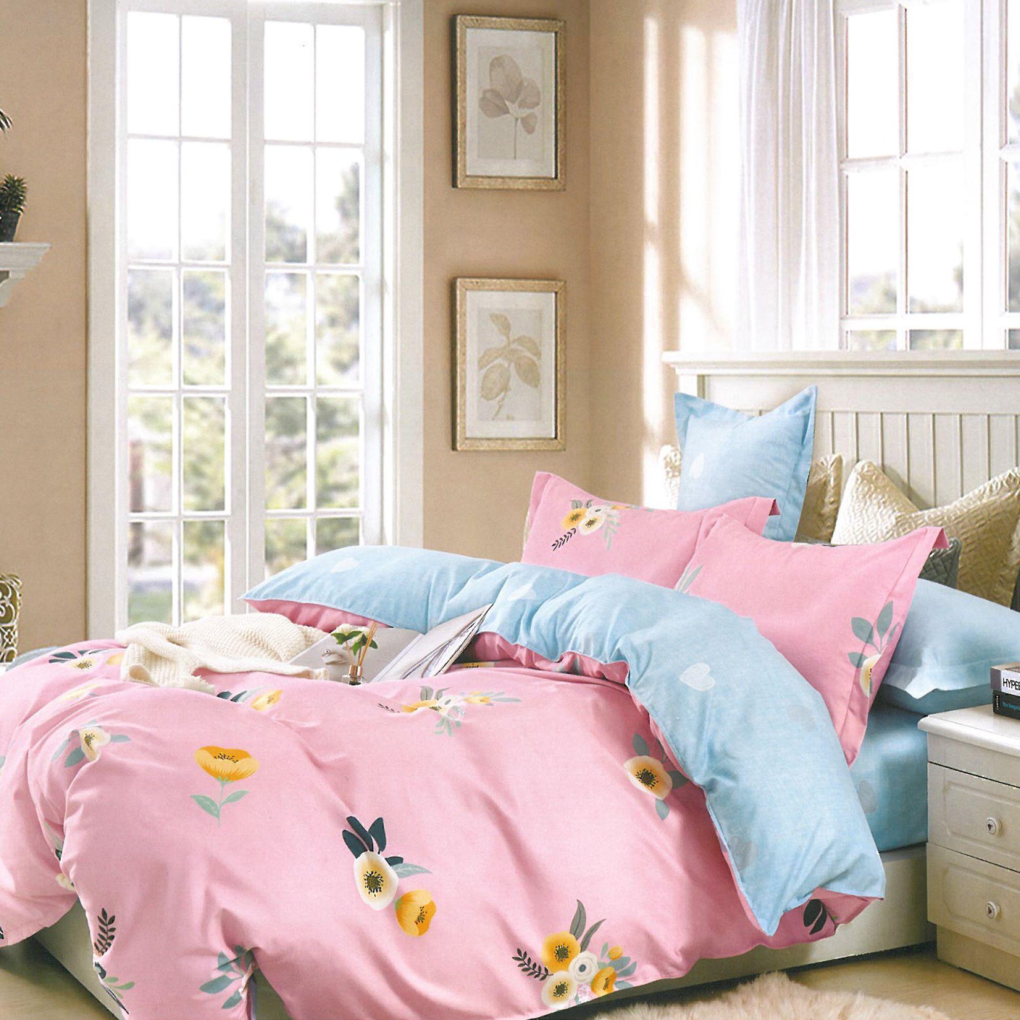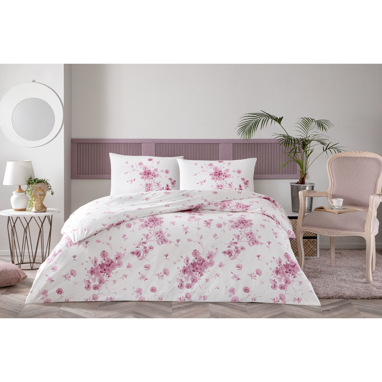 Lenjerie de pat Marie Nouell Flory 4 piese Finet pentru 2 persoane cu cearceaf pilota si perne