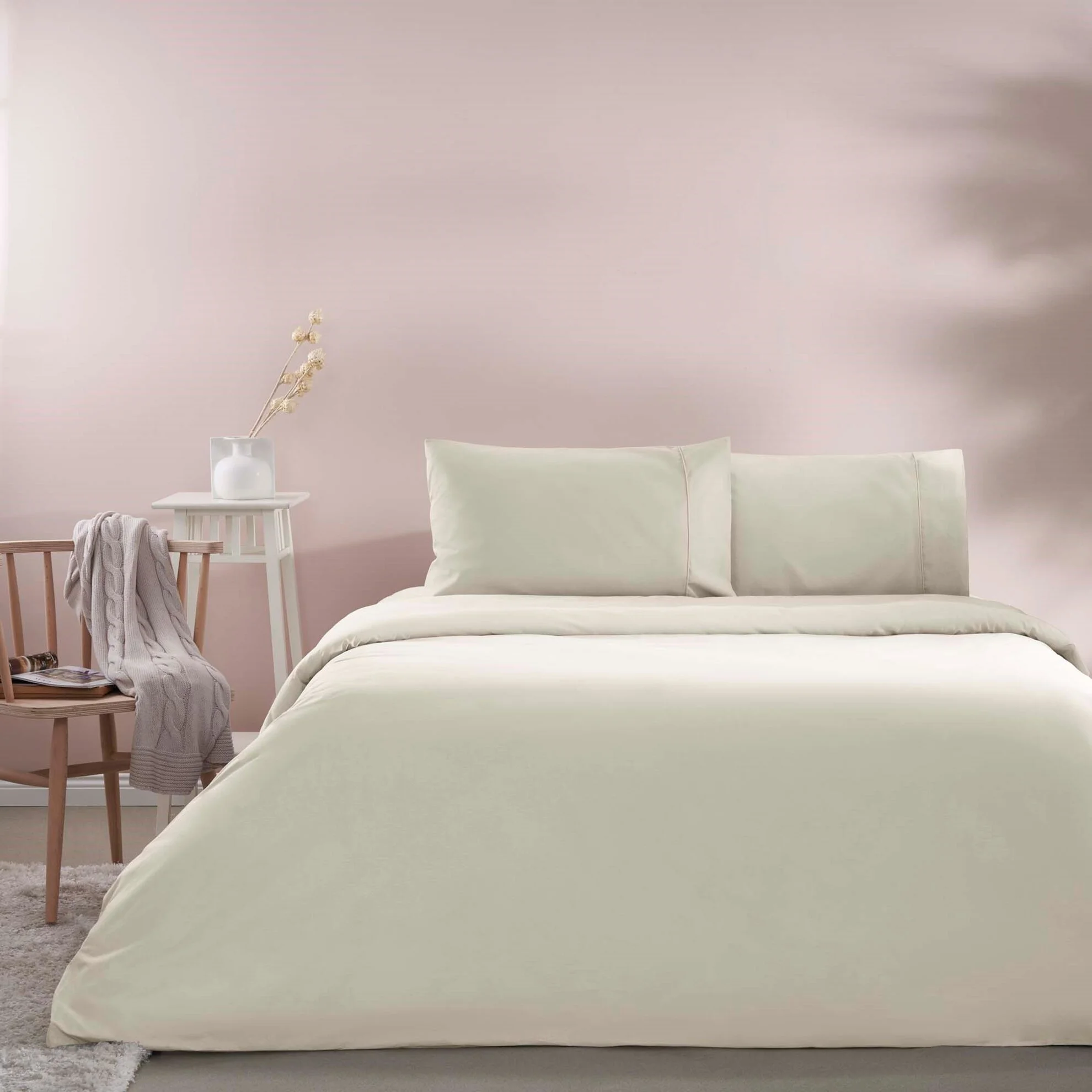 Lenjerie De Pat Basic Queen vizon – Premium Bumbac Ranforce 1 Persoană TAC
