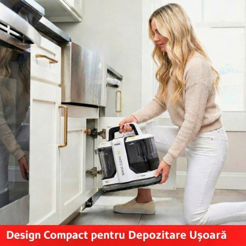 Aspirator cu Spălare Tapițerie Haeger Magic Clean 750W, Curățare Profundă Covor & Canapea, Injectie-Extractie, Auto, Compact