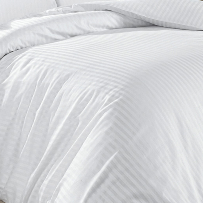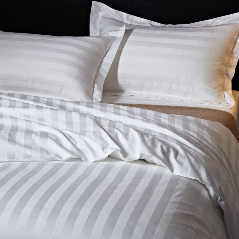 Set 10 Lenjerii Hoteliere Single Damasc Satinat Bumbac cu Dunga de 2 cm pentru Pat Individual