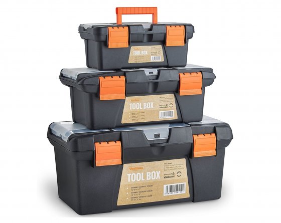 Set 3 cutii depozitare scule VonHaus din plastic cu compartimente detasabile, robuste si securizate pentru unelte