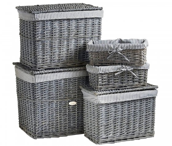 Set 5 cosuri din rachita gri VonHaus cu captuseala lavabila, depozitare eleganta pentru casa