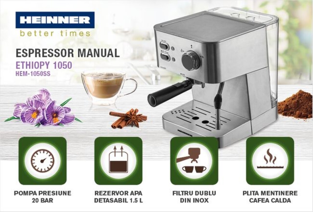Espressorul Heinner este proiectat pentru a oferi confort maxim cu un efort minim. Cu doar câteva acțiuni simple, poți savura o cafea delicioasă, fără a fi nevoie să fii un barista profesionist. În plus, Heinner este un brand recunoscut pentru calitatea și inovația produselor sale, având un portofoliu extins de peste 300 de modele de electrocasnice.