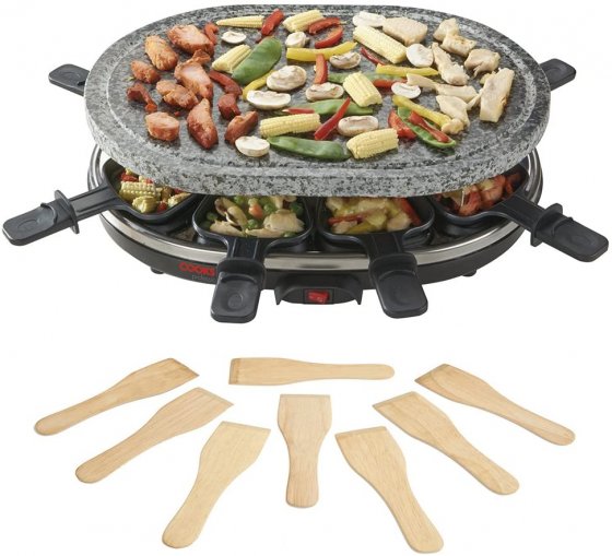 Grill Raclette cu Plită de Piatră Cooks Professional D7773, 1500 W, 8 Raclete si 8 Spatule Incluse