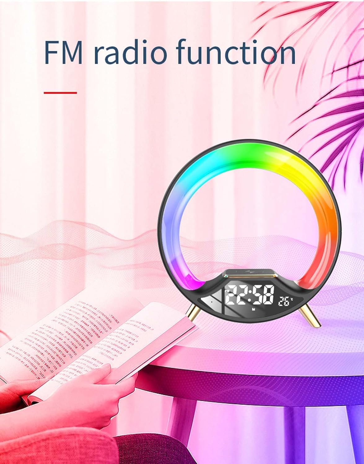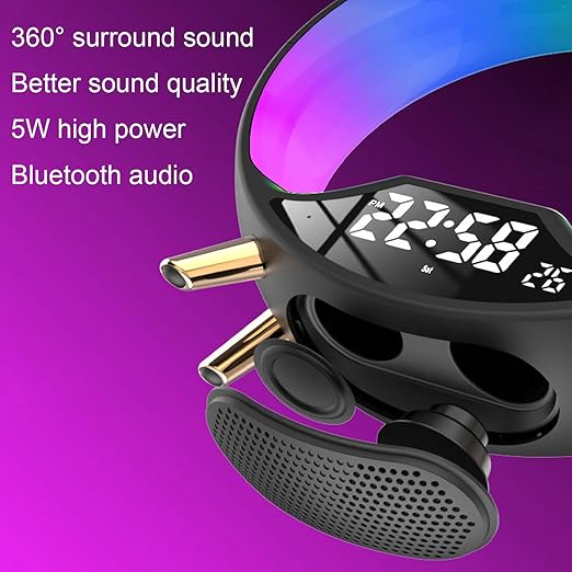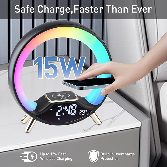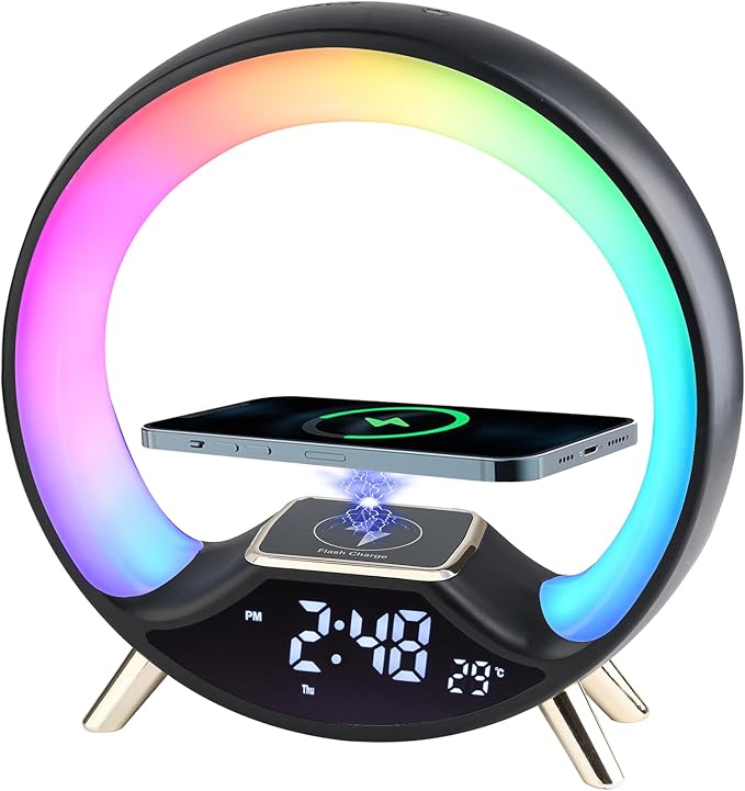 Această lampă inovatoare nu doar că luminează, ci îți încarcă rapid și fără fir dispozitivele compatibile, datorită încărcătorului wireless integrat. Adaugă un plus de funcționalitate prin difuzorul Bluetooth încorporat, ce îți permite să asculți muzica preferată, podcasturi sau audiobook-uri direct de pe telefon. Calitatea sunetului este clară și echilibrată, completând perfect atmosfera creată de jocul de lumini.