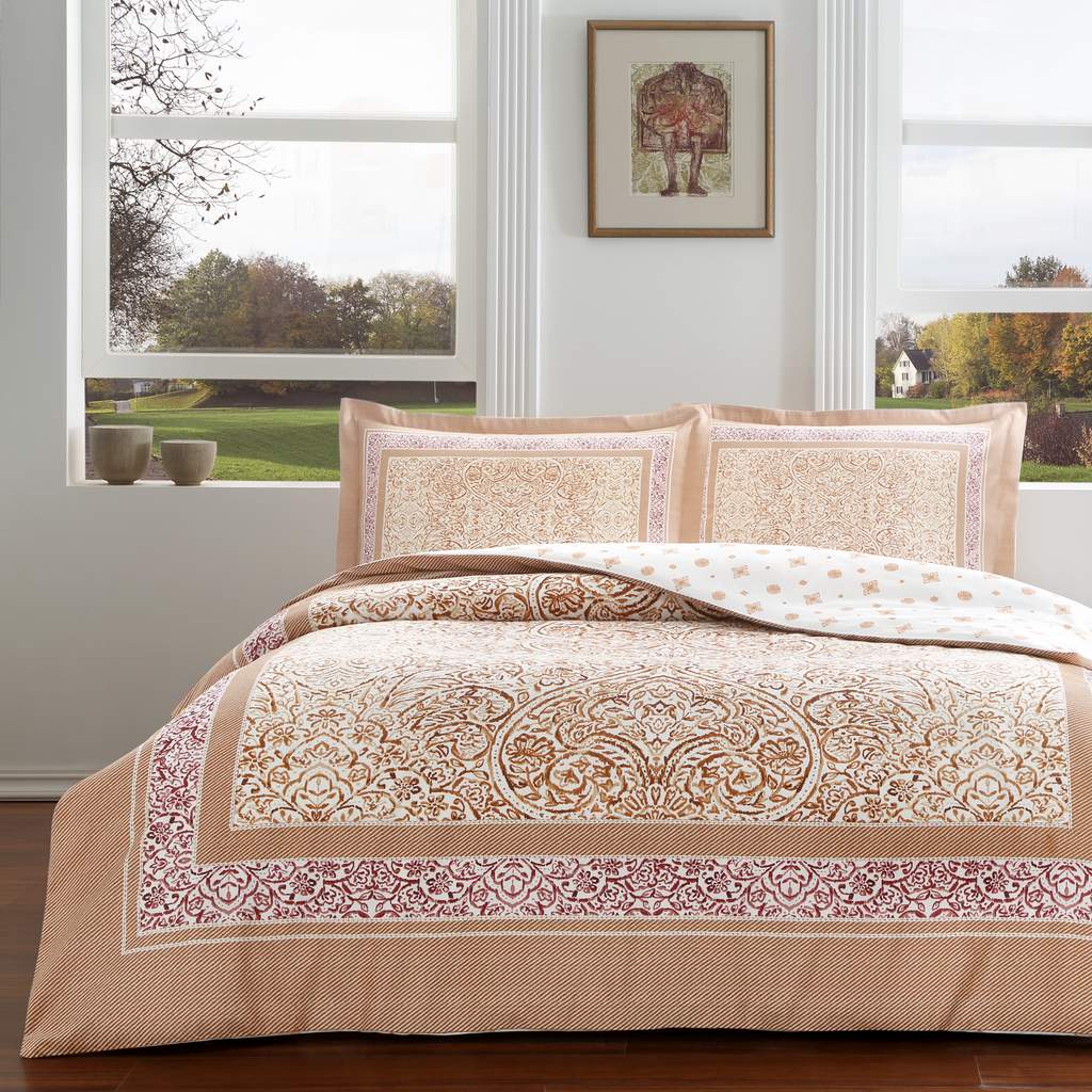 Lenjeria de pat este fabricata din 100% bumbac natural mercelizat / satinat. Aceasta este tratata antisifonare, are tesatura densa placuta la atingere cu un design modern.