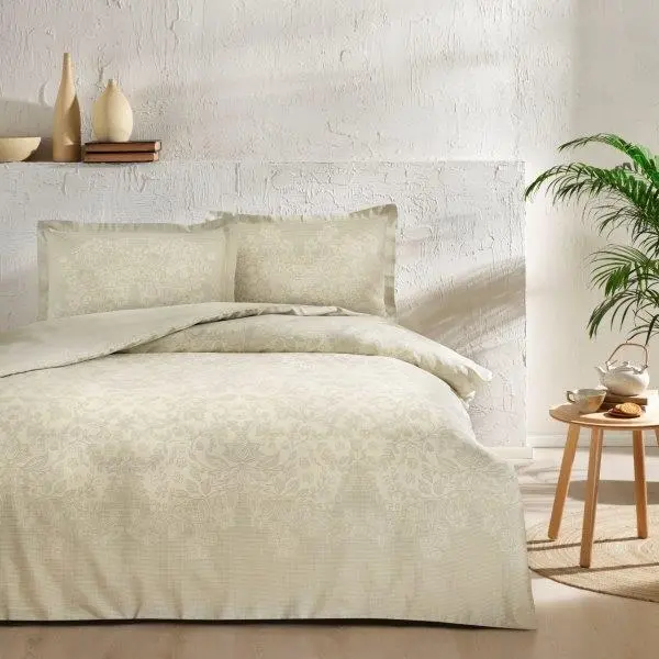 Lenjeria de pat este fabricata din 100% bumbac natural mercelizat / satinat. Aceasta este tratata antisifonare, are tesatura densa placuta la atingere cu un design modern.
