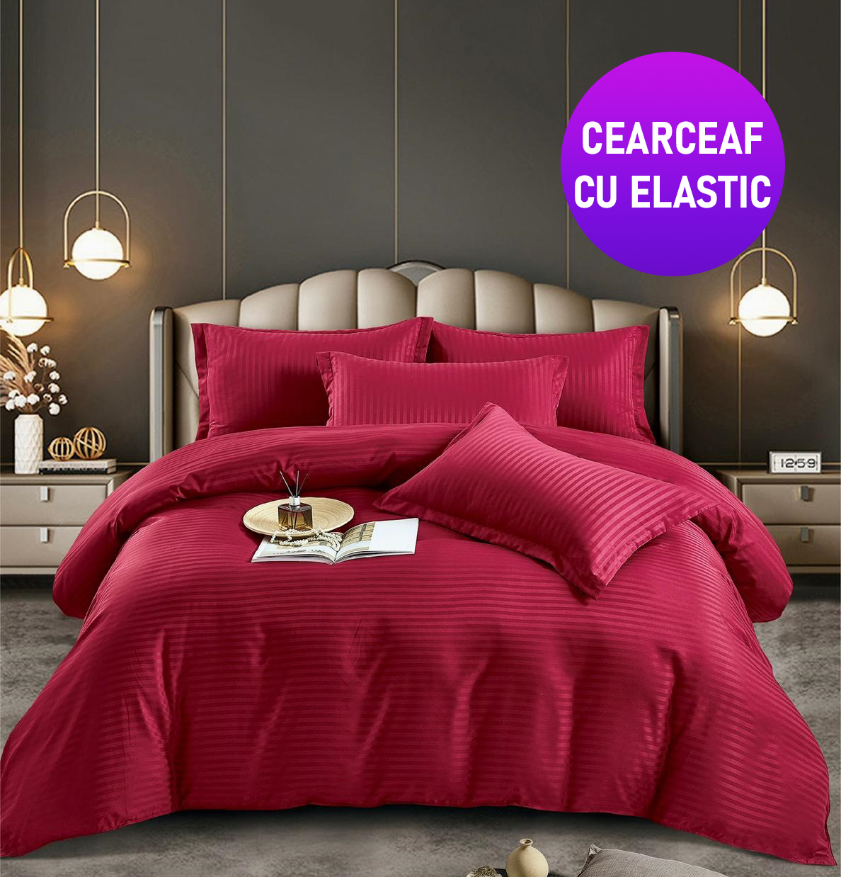 Lenjerie king size cu elastic Damasc Finet 6 piese Rosu