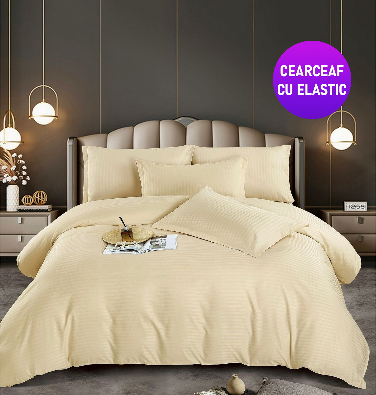 Setul contine 6 piese, oferindu-vă tot ce aveți nevoie pentru a vă completa patul cu un aspect complet și uniform. Setul include cearceaf pat cu elastic 180×200 cm, cearceaful de pilota 200×230 cm, 2 fețe de pernă 50×70 cm si 2 fețe de pernă 70×70 cm, oferindu-vă posibilitatea de a crea un decor armonios și elegant în dormitorul dvs.