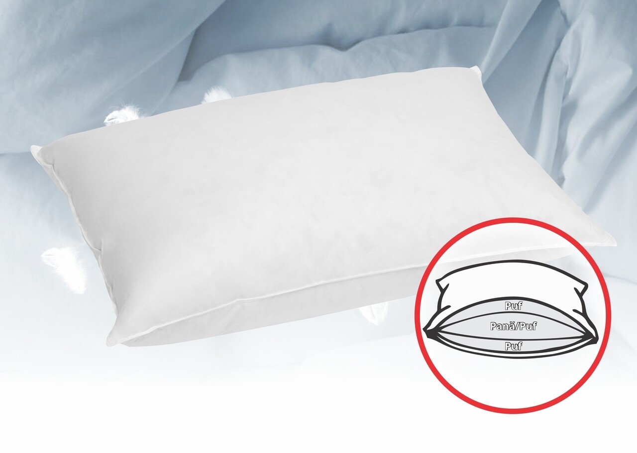 - Umplutură din puf și pene de gâscă: Oferă un confort de neegalat, menținându-ți capul și gâtul într-o poziție optimă.