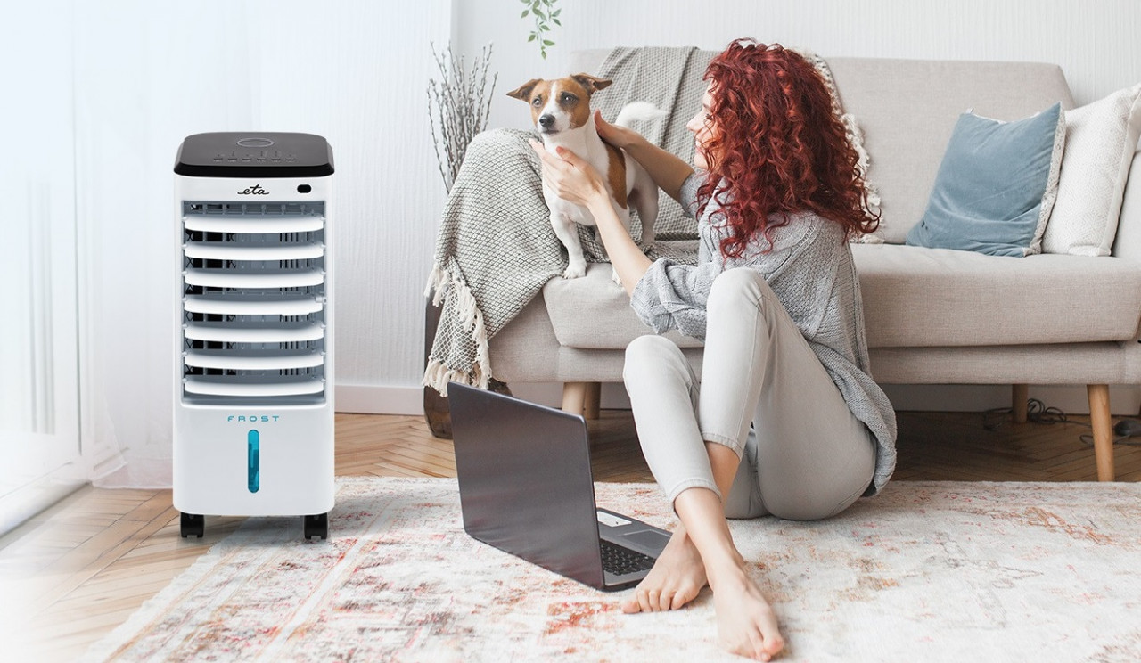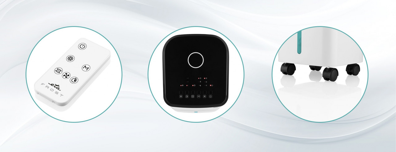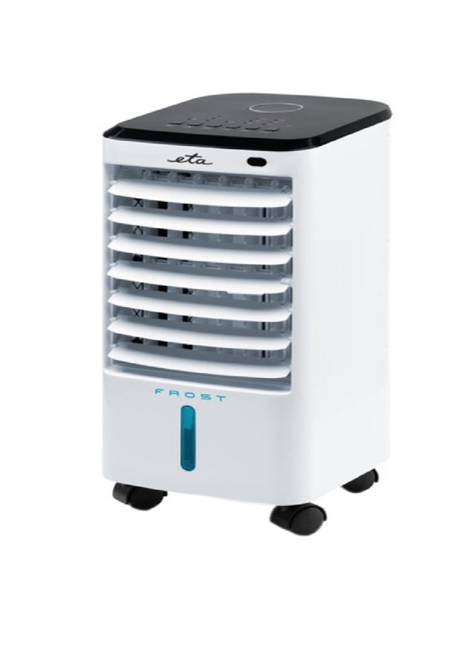 Racitorul de aer ETA Frost raceste si umidifica aerul dar poate functiona si ca ventilator clasic . Alegerea functiilor si a combinatiilor acestora depinde in totalitate de dvs. – puteti utiliza umidificarea separata fara racire sau puteti porni doar ventilatorul.
