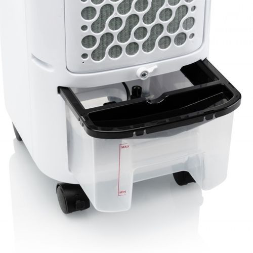 Aparatul ofera rezultate de racire intre un aparat de aer conditionat mobil si un ventilator obisnuit. Principiul de functionare consta in pomparea apei din rezervorul de apa, in care puteti introduce pastile congelate sau cuburi de gheata. Apa ajunge pe o placa de racire prin care trece un flux de aer. Aerul ambiant devine astfel mai rece (in functie de temperatura apei) si umiditatea sa relativa creste.