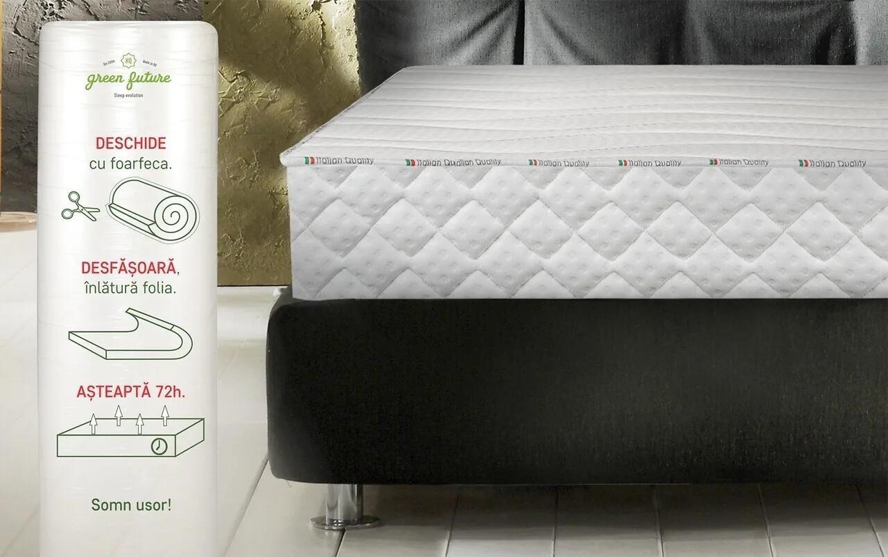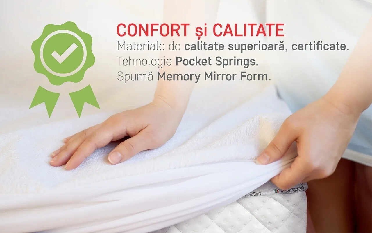 Conceputa cu materiale de calitate superioara, salteaua imbina tehnologia arcurilor impachetate individual tip Pocket cu cea a spumei elastice Green Form HD® si a spumei Green Therm Memory® pentru un confort ortopedic si anatomic excelent.