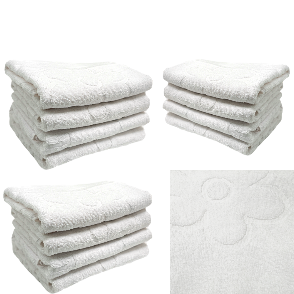 Set 12 Prosoape model floral 70x130cm bumbac pakistanez 400 g/mp Alb Optic