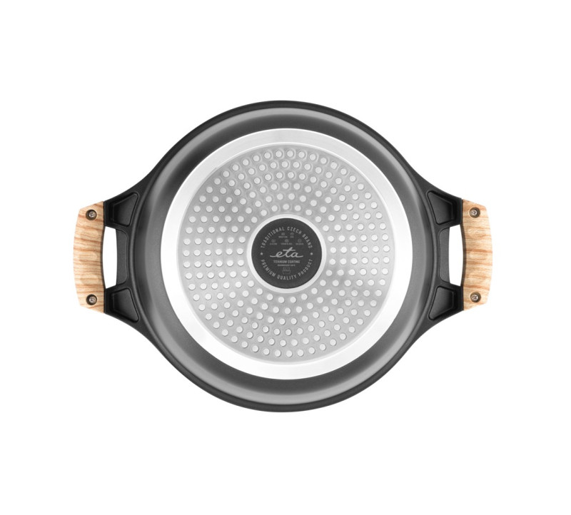 Toate vasele sunt prevazute cu manere si capace transparente. Vasele de gatit ETA Titanium II sunt potrivite pentru toate tipurile de incalzire – electricitate, gaz, sticla ceramica, inductie si halogen. Manerele sunt termoizolate pentru o manipulare sigura si pot rezista la temperaturi de pana la 220°C.
