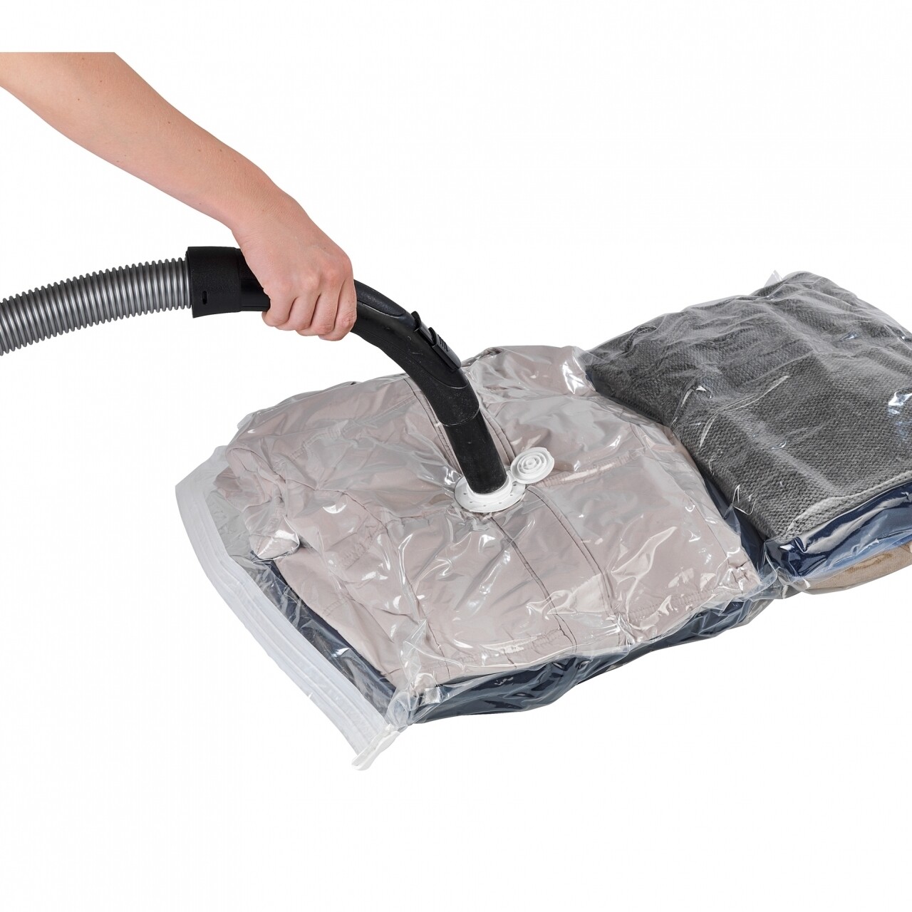 - Reducerea volumului: Extrage aerul cu ajutorul aspiratorului pentru a minimiza spațiul ocupat de haine.