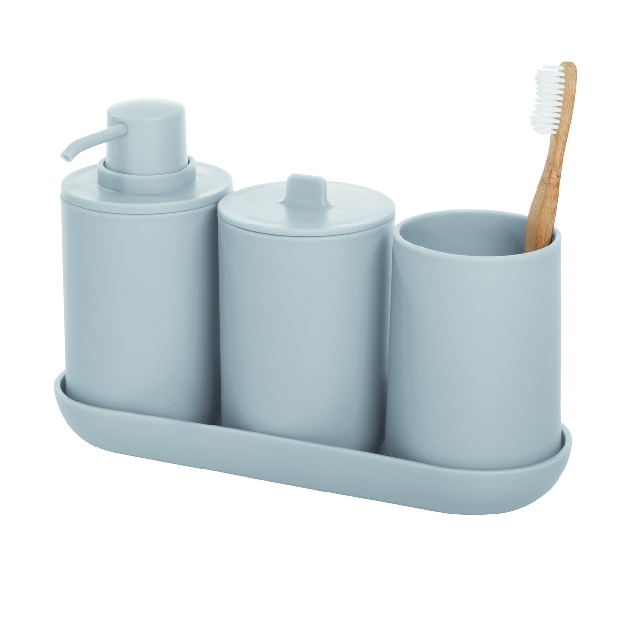Set de baie 4 piese Cade, iDesign, plastic, gri