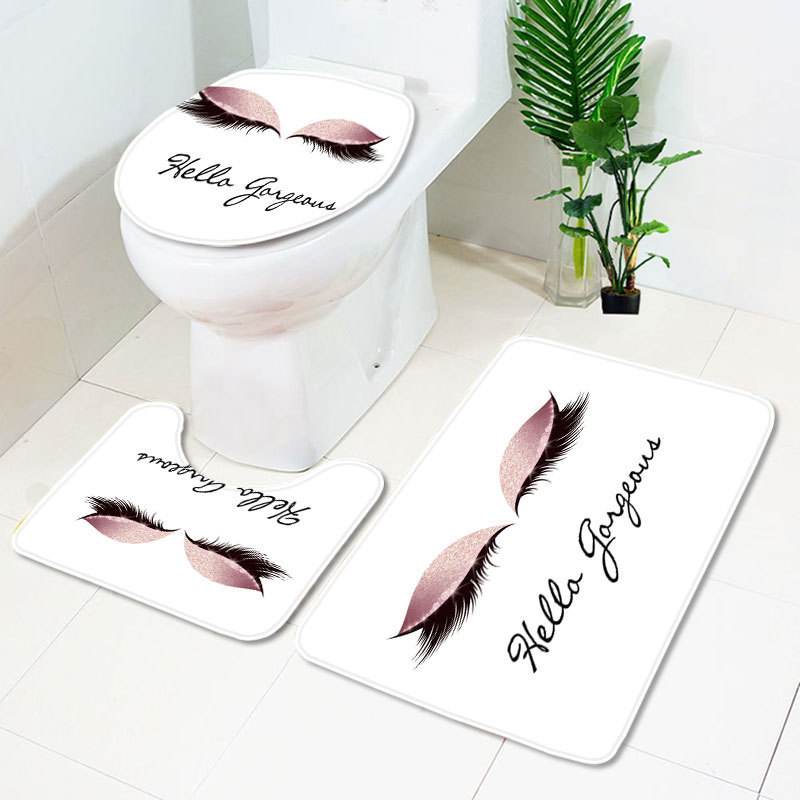 Set de baie cu perdea de dus impermeabila si covorase antiderapante plus husa de toaleta model deosebit