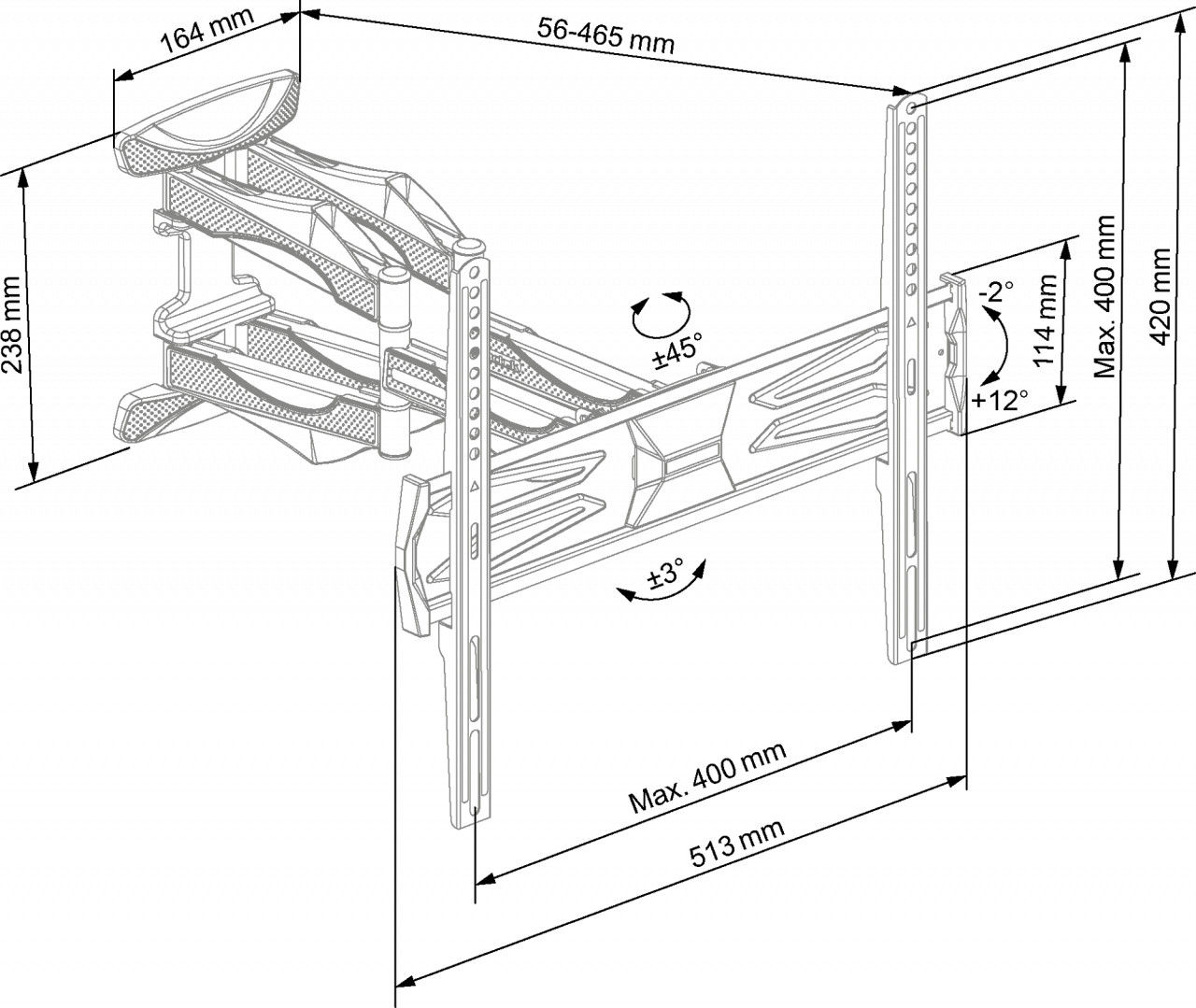 - Distanta Televizorului față de Perete: Posibilitate de ajustare a distanței dintre televizor și perete, variind între 56 mm și 465 mm.